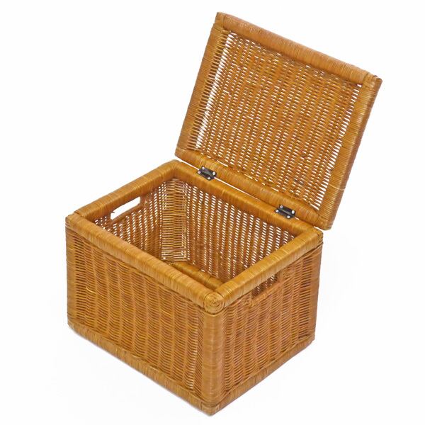 インドネシア産の上等な籐ツルを使用して丁寧に編まれたふた付きの