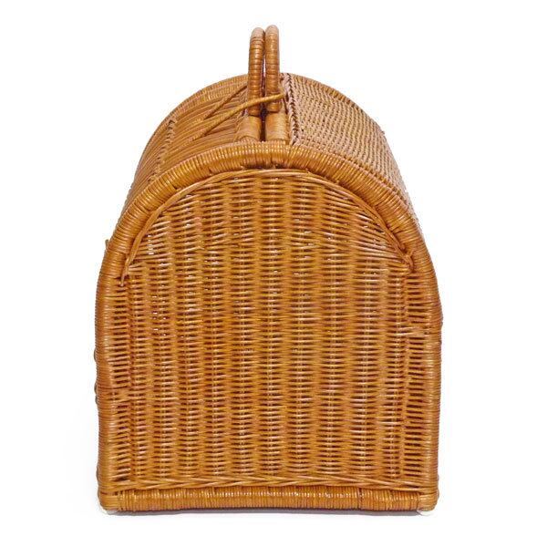 良質の籐(ラタン)で熟練の職人が丁寧に編みあげた自然素材のペットキャリー。通気性が良く、プラスチックとは一味違う手造りのぬくもり。