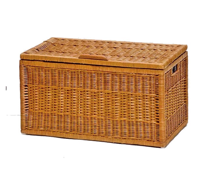 オーソドックスな角型、そしてふた付きの籐バスケット。