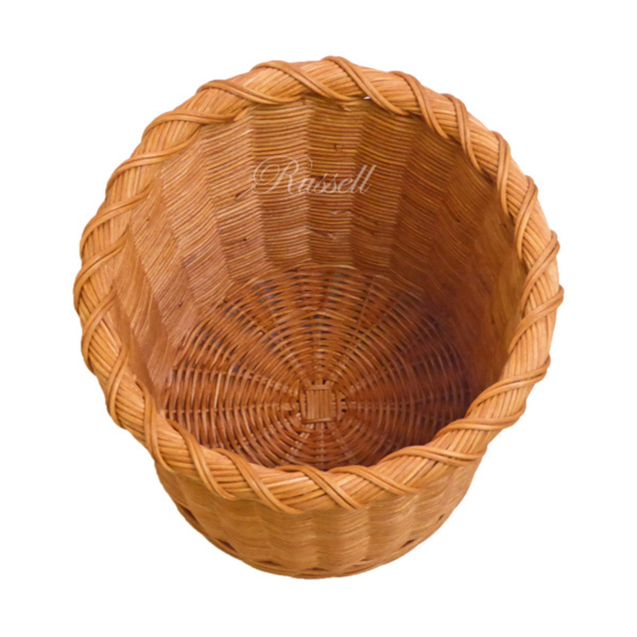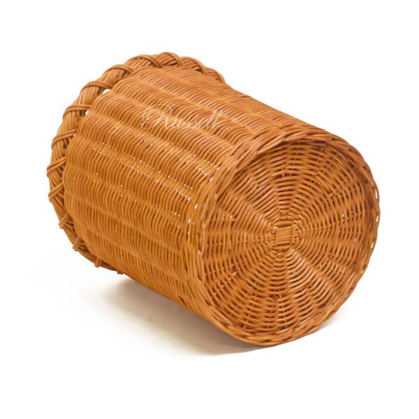 円筒形で、上枠部分に籐ツルをクルクルと巻いたデザインは当社のオリジナルです。