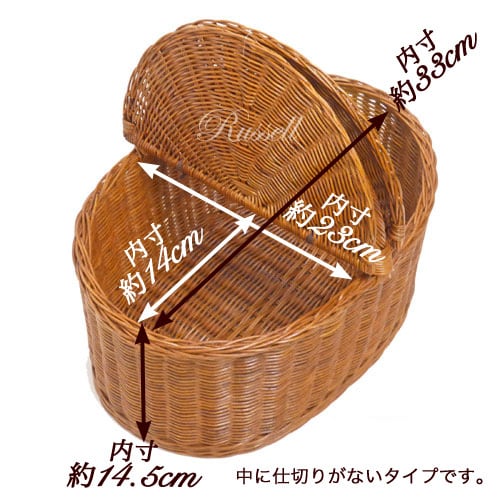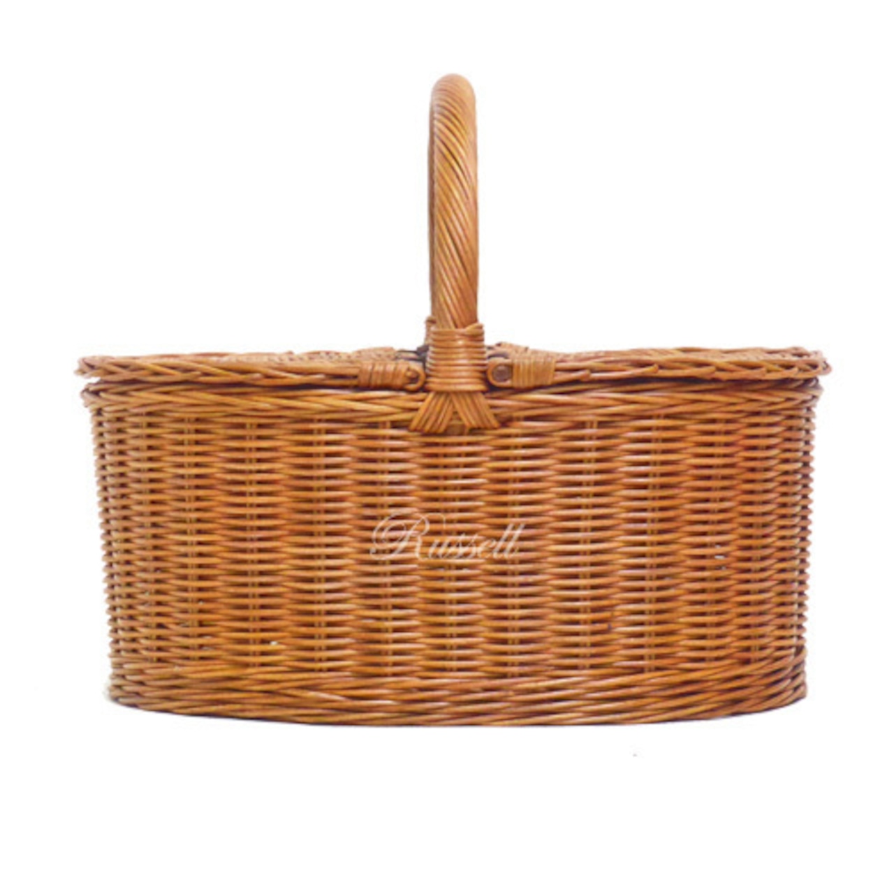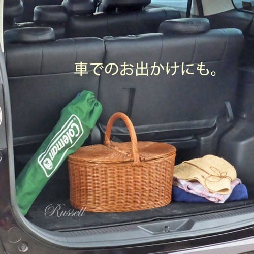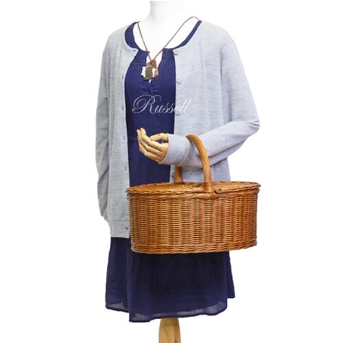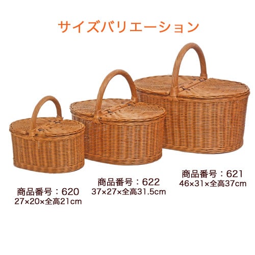 1-622 ハンドルが太くて安心 籐製ふた付きピクニックバスケット(M) かごのお店ラッセル