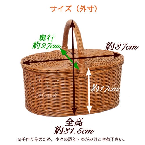・サイズ:幅約37x奥行約27x高さ約17cm(持ち手含めた高さ約31cm)