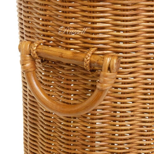 円筒形で、上枠部分に籐ツルをクルクルと巻いたデザインは当社のオリジナルです。