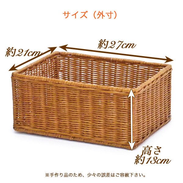 インドネシア産の上等な籐ツルで丁寧に編まれ、枠が太くて丈夫な造りが自慢です。まさに収納にぴったりの、かっちりとした長角型。