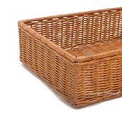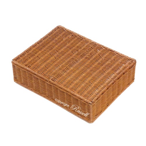 インドネシア産の上等な籐ツルで丁寧に編まれ、枠が太くて丈夫な造りが自慢です。まさに収納にぴったりの、かっちりとした長角型。