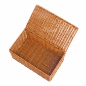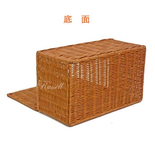インドネシア産の上等な籐ツルで丁寧に編まれ、枠が太くて丈夫な造りが自慢です。まさに収納にぴったりの、かっちりとした長角型。