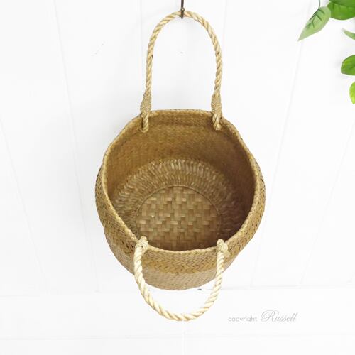 タイの職人さんが天然素材の水草(カチュー)で編んだハンドメイドのかごバッグ。