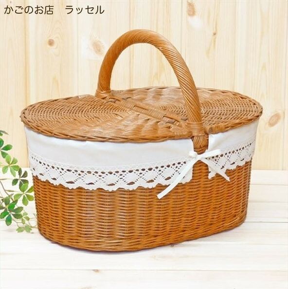 14-WF621 NA ハンドルが太くて安心 ふた付きピクニックバスケット布付(L) かごのお店ラッセル