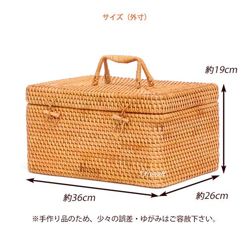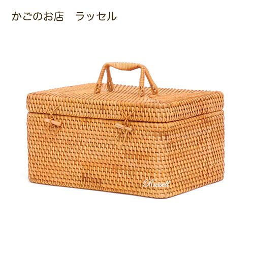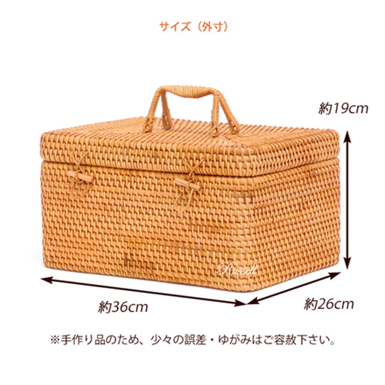 【セール品 在庫限り 無くなり次第終了します】No.381 (L) ランチボックス ピクニックバスケット かご 収納バスケット ベトナムラタン 籐かご